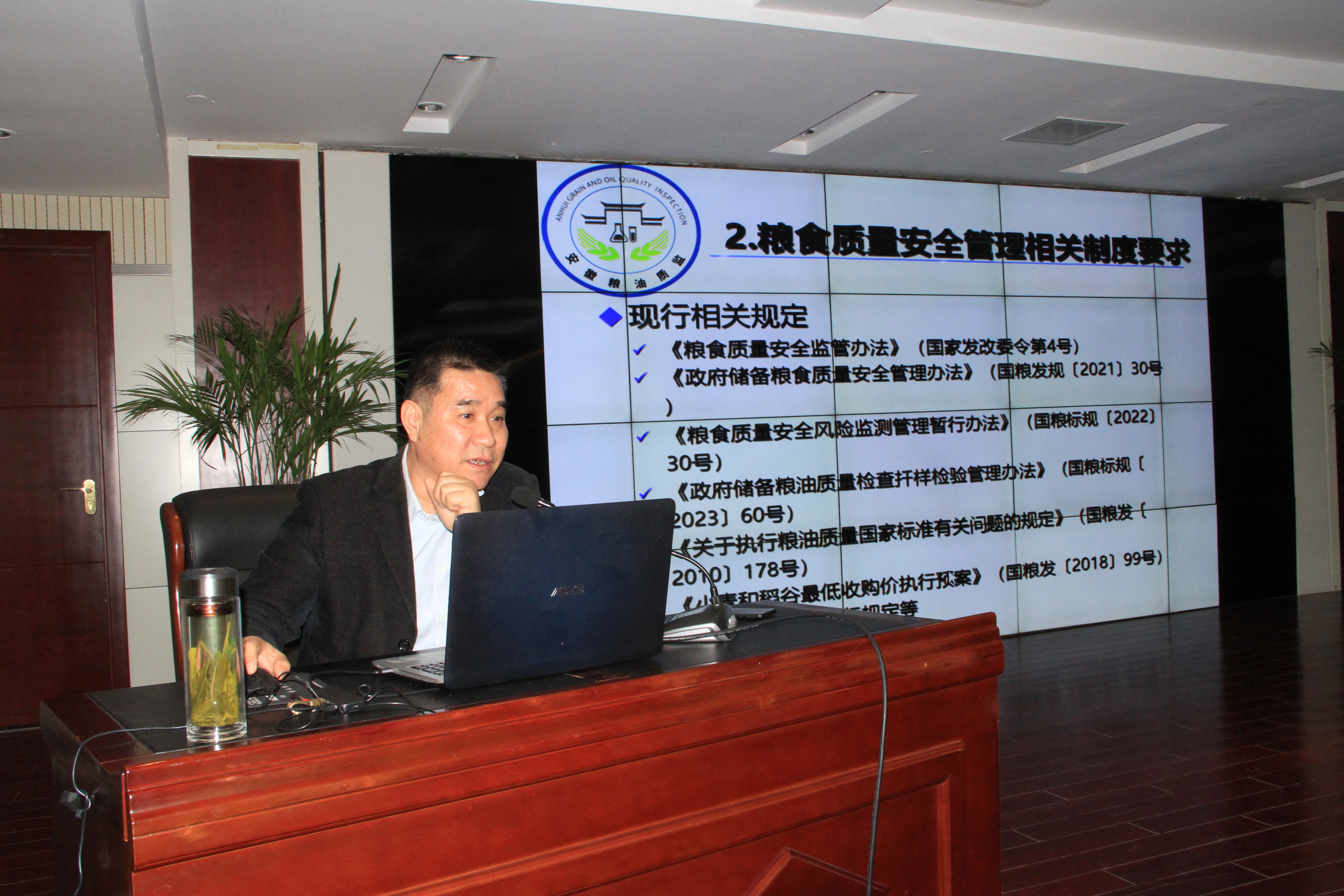 12月2021日,我站在省局统一安排下,开展2023年全省粮食质检机构检验能力培训和粮食质量安全检验机构比对考核工作,会议由季一顺站长主持,省局安全仓储与科技处处长范祥林出席会议并指导,各市级粮食质量监测机构及部分县级机构参加。