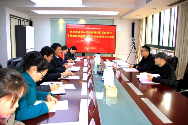 3月19日,省粮油产品质量监督检测站党总支召开2025年度民主生活会。省粮食和物资储备局党组成员、副局长吴龙剑一行参加会议并作指导。